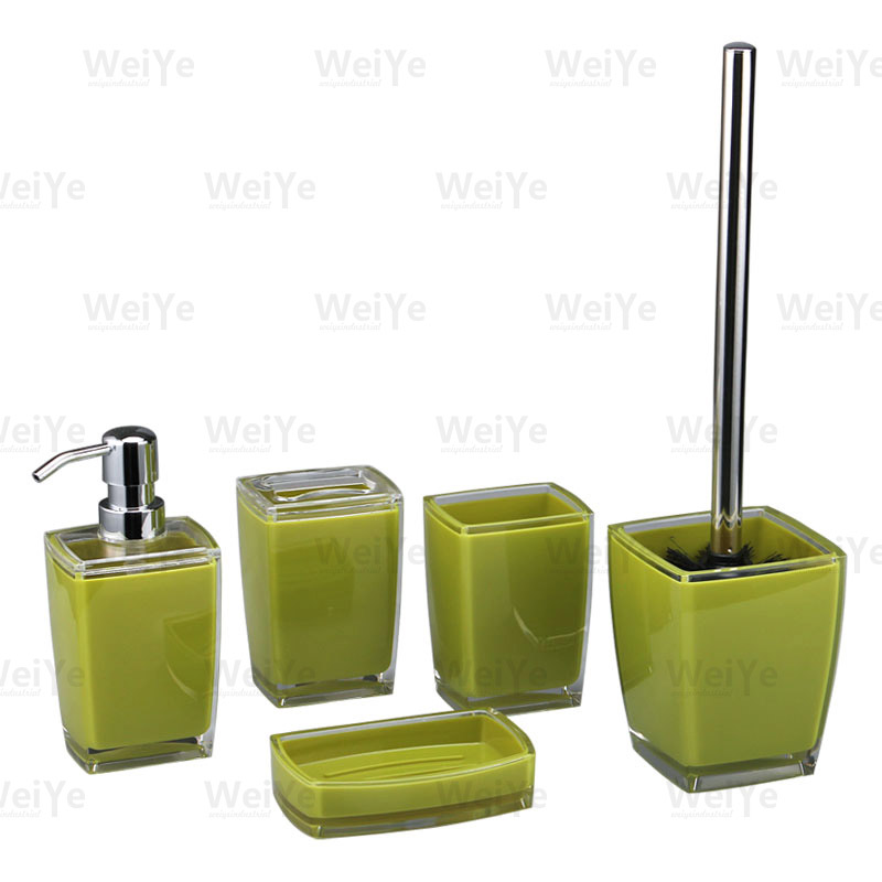 浴室用品套装方锥形双色系列5件套装包括:方锥形口杯、方锥形牙刷杯、方锥形液瓶、方锥形皂碟、方锥形马桶刷。