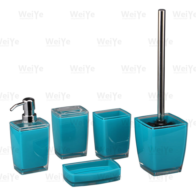 浴室用品套装方锥形双色系列5件套装包括:方锥形口杯、方锥形牙刷杯、方锥形液瓶、方锥形皂碟、方锥形马桶刷。