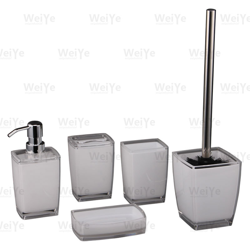 浴室用品套装方锥形双色系列5件套装包括:方锥形口杯、方锥形牙刷杯、方锥形液瓶、方锥形皂碟、方锥形马桶刷。