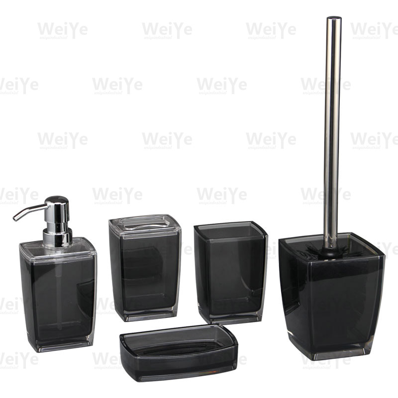 浴室用品套装方锥形双色系列5件套装包括:方锥形口杯、方锥形牙刷杯、方锥形液瓶、方锥形皂碟、方锥形马桶刷。