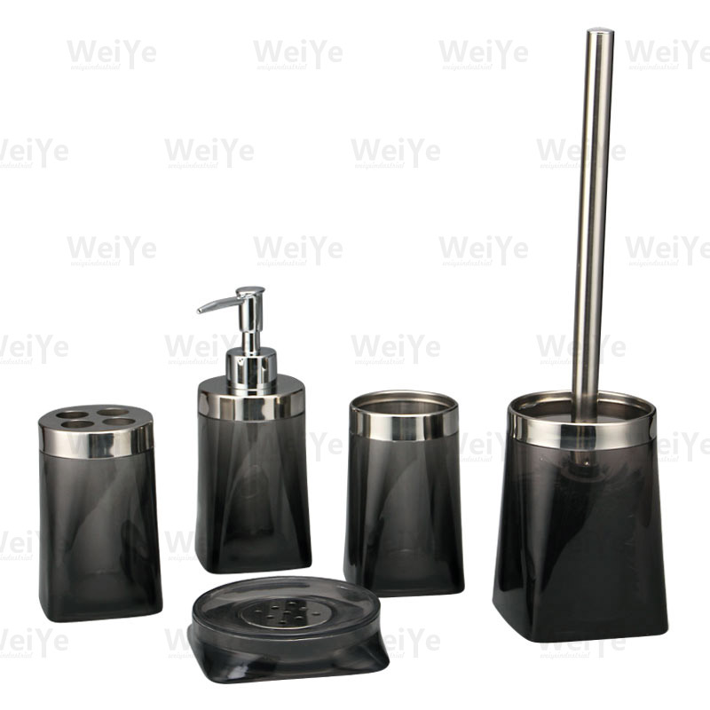浴室用品上圆下方(配五金)系列5件套包括:上圆下方(配五金)口杯、上圆下方(配五金)牙刷杯、上圆下方(配五金)液瓶、上圆下方(配五金)皂碟、上圆下方(配五金)马桶刷。