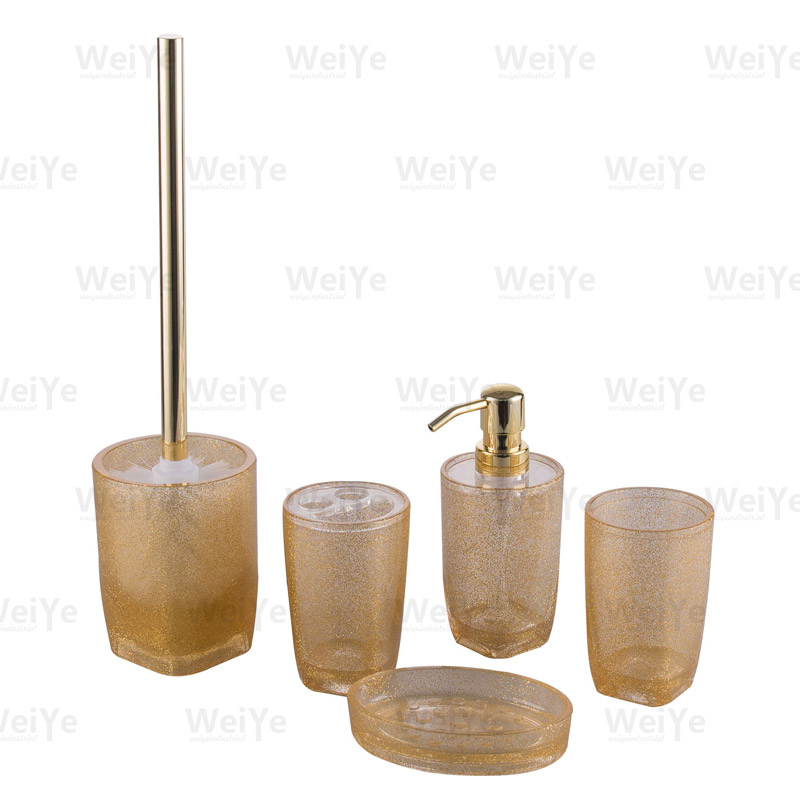 浴室用品套装上圆下方(闪金、闪银)系列5件套包括:上圆下方(闪金、闪银)口杯、上圆下方(闪金、闪银)牙刷杯、上圆下方(闪金、闪银)液瓶、上圆下方(闪金、闪银)皂碟、上圆下方(闪金、闪银)马桶刷。